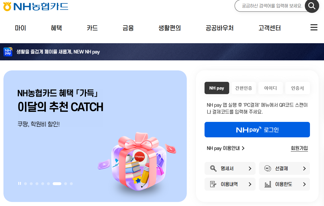 - NH농협카드 앱 or 홈페이지 로그인